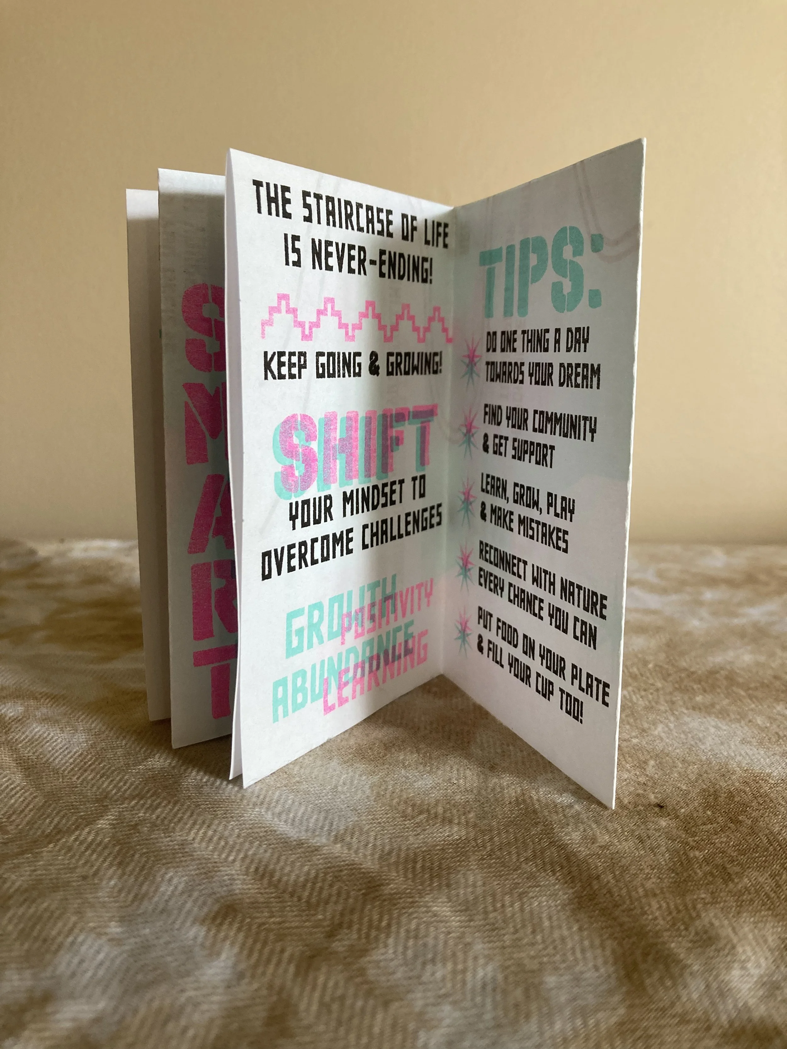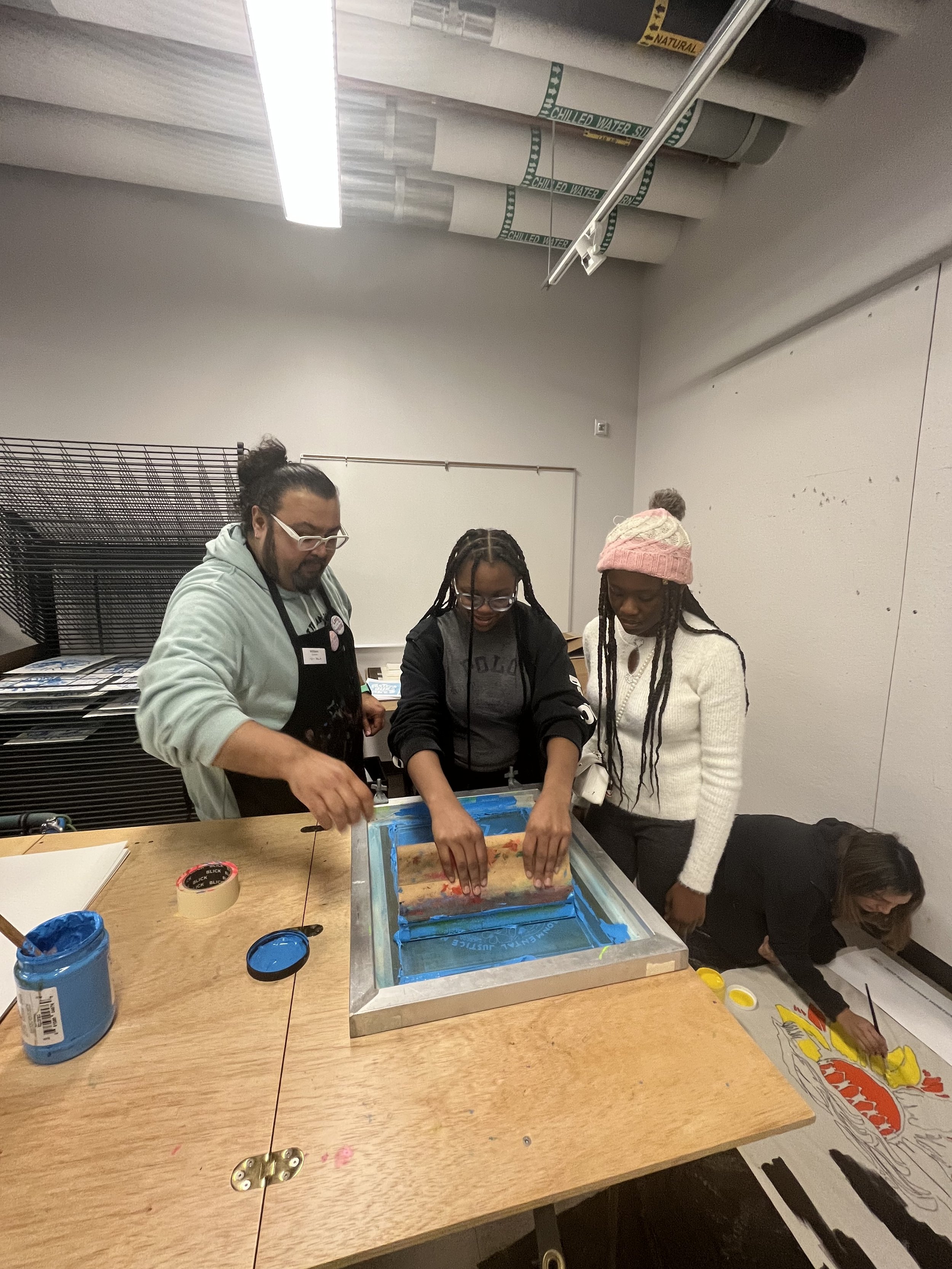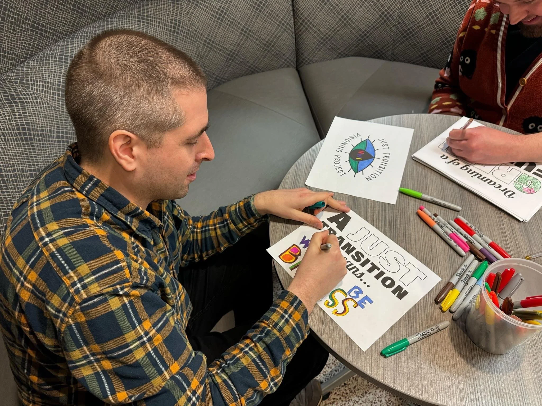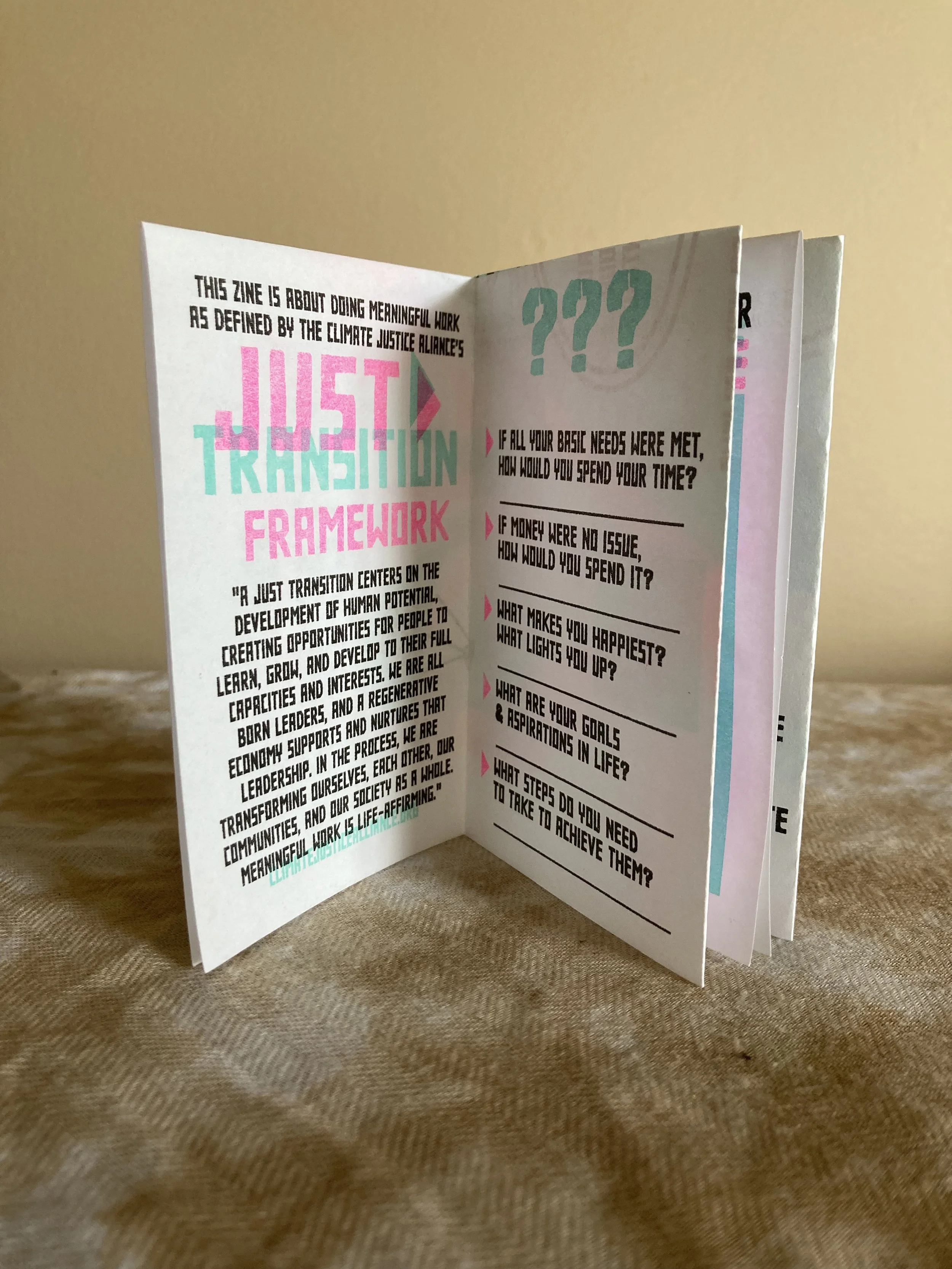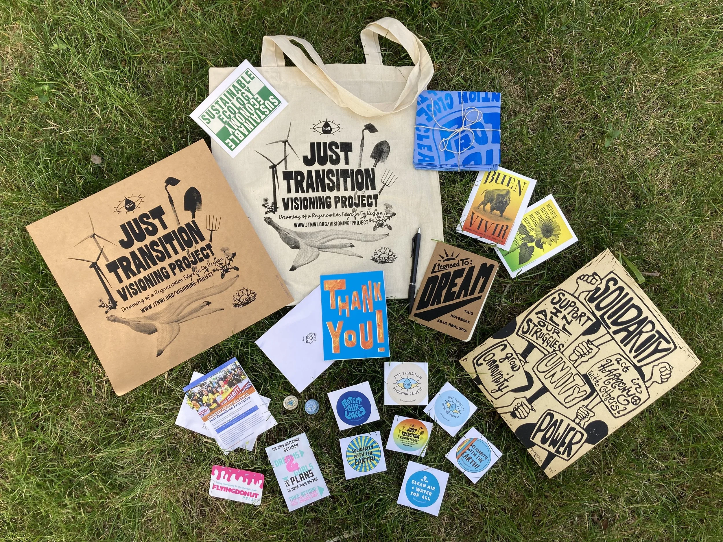 The Just Transition Visioning Project is a new program that was launched in 2024 by Just Transition NWI and partner artists to dream of a “Just Transition” for the region through art workshops and many other visionary activities. Kaitlyn was invited to be a host artist for this project and created the logo, as well as buttons, stickers, coloring sheets, bandanas, tote bags, flyers, banners, art prints, a zine, thank you cards, and swag bags full of goodies for all of the participating artists at the Just Transition Visioning Project Art Exhibit at Paul Henry’s Art Gallery in Hammond, IN on 7/26/24. She also performed onsite screen printing and supplied bandanas and art prints for multiple Earth Day and Pride events throughout the months of May and June 2024.