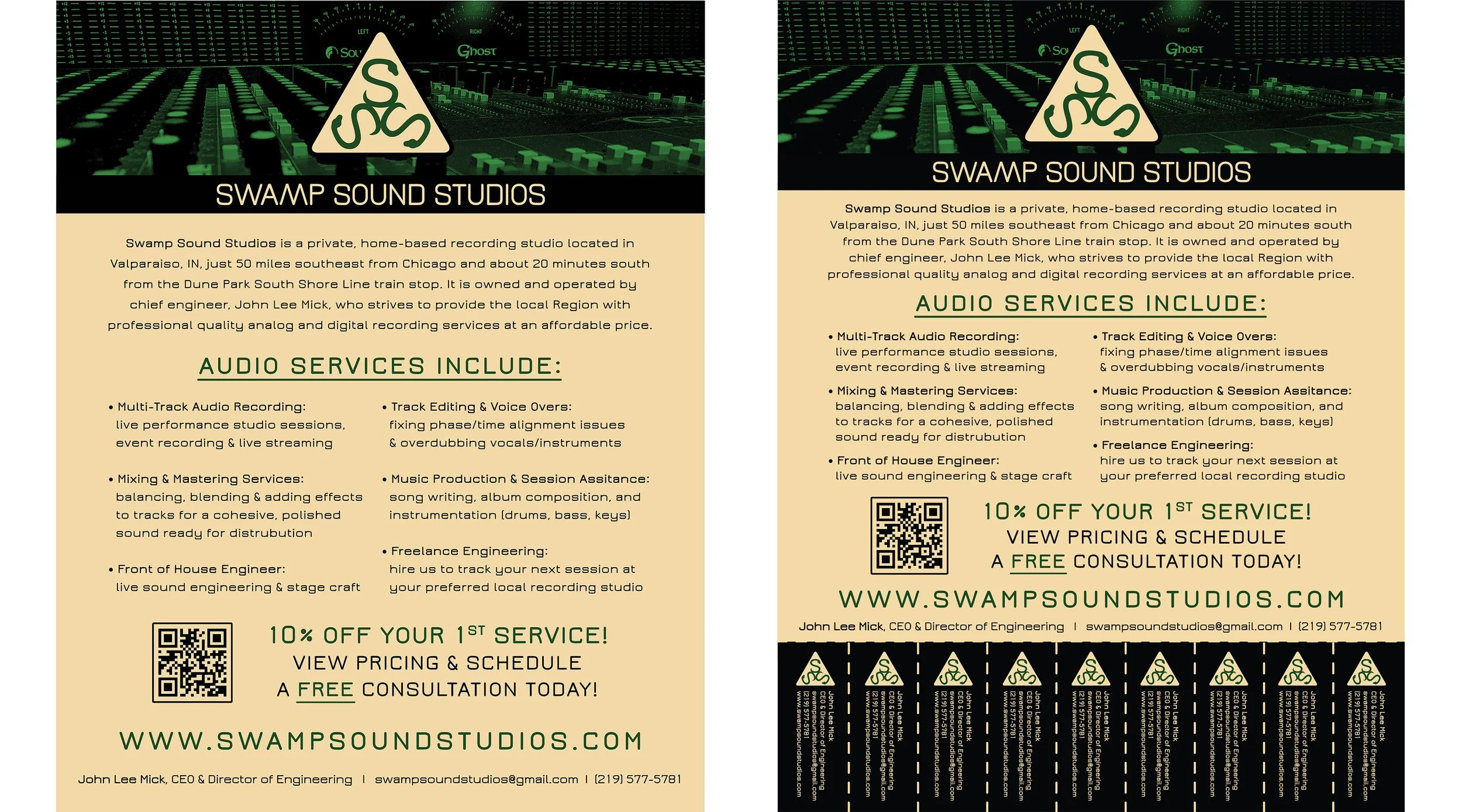 Swamp Sound Studios is an independent recording studio based in Northwest Indiana, owned by John Lee Mick, CEO & Chief Engineer.